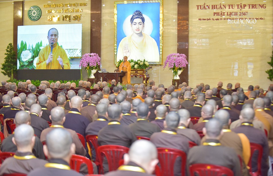 GNO - Sáng 17-12, theo chương trình Khóa huân tu tập trung và Bồi dưỡng trụ trì Phật lịch 2567, Thượng toạ Thích Tâm Hải, Ủy viên Hội đồng Trị sự, Phó ban Thông tin Truyền thông T.Ư, Trưởng ban Thông tin - Truyền thông GHPGVN TP.HCM, Tổng Biên tập Báo Giác Ngộ đã có buổi chia sẻ về Truyền thông với Phật giáo.