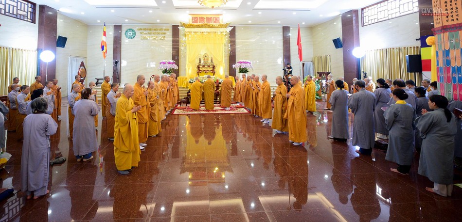 Trưa nay, chư tôn đức Ban Nghi lễ Phật giáo TP.HCM trang nghiêm cử hành khóa lễ tiến linh cầu siêu độ tại Đại lễ kỳ siêu tại Việt Nam Quốc Tự.