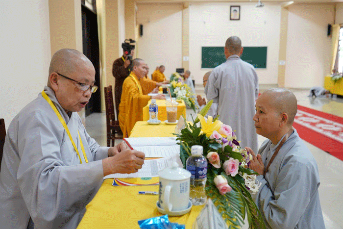 Giới tử thực hiện khảo thí trong Đại giới đàn lần này bằng hai hình thức: Trả lời câu hỏi trực tiếp từ chư tôn đức trong Ban Giám khảo và viết bài luận ngắn.
