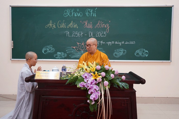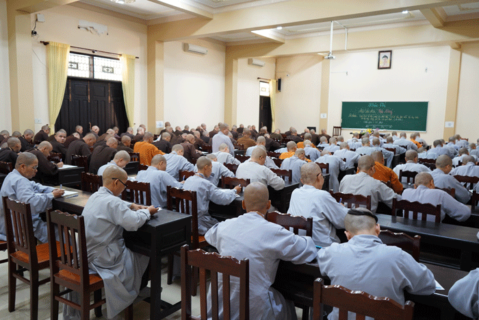 Giới tử lắng nghe lời sách tấn của Thượng tọa Chánh Chủ khảo |