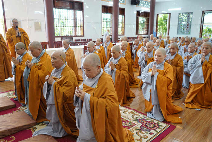 Đại diện chư tôn đức Ni trong Hội đồng Thập sư trang nghiêm đến chùa Vĩnh Tràng để cung thỉnh pháp tướng Tổ sư về tôn trí tại giới đàn Ni.