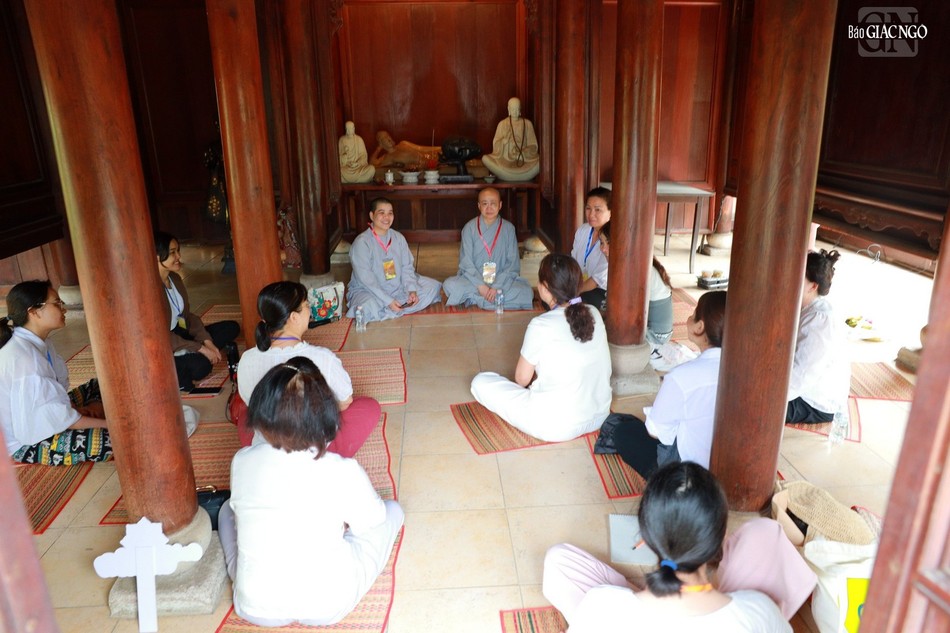 Các bạn trẻ tham gia khóa tu dành cho người bận rộn bên cạnh chư tôn đức |