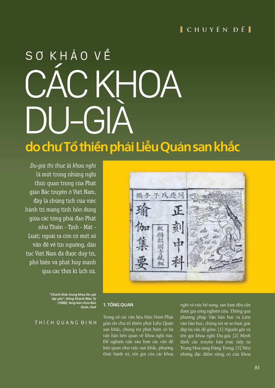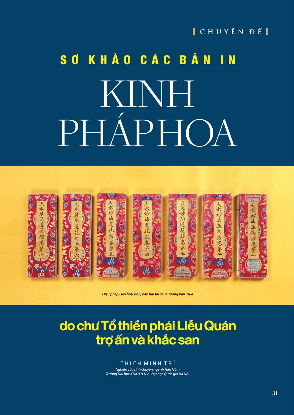 Các chuyên đề được chuyển tải qua từng số ấn phẩm, liên quan đến di sản, tư liệu Phật giáo đã trở thành “đặc sản” của Liễu Quán, và luôn được độc giả mong đợi. Như thường kỳ, ấn phẩm Liễu Quán số 34 đăng tải chuyên đề: “Tư liệu mới về thiền phái Liễu Quán qua khảo sát điển tịch cổ”, giới thiệu những thông tin mới, có giá trị liên quan đến lịch đại Tổ sư truyền thừa của thiền phái Liễu Quán qua các văn bản và điển tịch cổ vừa được phát hiện trong thời gian gần đây với các bài viết: Sử liệu về thiền phái Liễu Quán thế kỷ XVIII qua văn bản “Chuẩn Đề hội thích”, Sơ khảo các bản in kinh Pháp Hoa do chư Tổ thiền phái Liễu Quán trợ ấn và khắc san, Sơ khảo về các khoa Du-già do chư Tổ thiền phái Liễu Quán san khắc,…