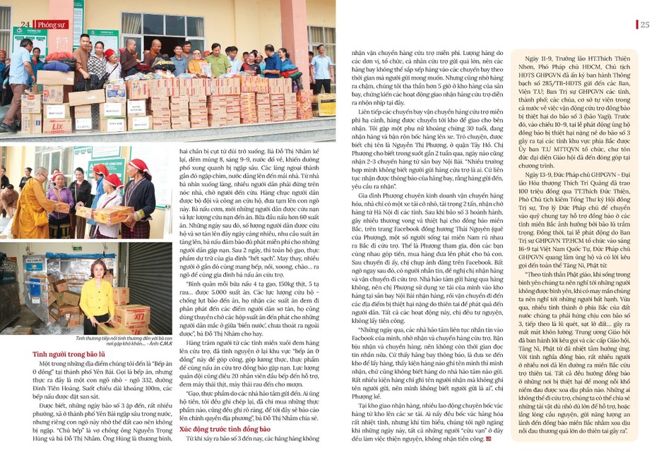 Tôi nhận được điện thoại từ Đại đức Thích Bổn Trí ở Tiền Giang và Ni sư Thích nữ Thắm Trang ở TP.HCM, rằng muốn đem hàng ra cứu trợ người dân gặp thiệt hại do bão số 3, nhờ kết nối điểm đến. Tôi liên lạc với nhà báo Thành Tâm, phụ trách Văn phòng đại diện Báo Nhân Dân tại Lào Cai. Thành Tâm nhận lời, cho biết Báo Nhân Dân sẽ hỗ trợ một xe tải đến đón hàng ở sân bay Nội Bài, vận chuyển tới các điểm cứu trợ ở Yên Bái và Lào Cai.