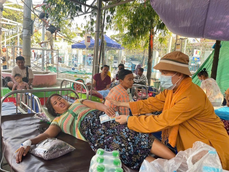 Nhiều ngày sau trận động đất mạnh 7,7 độ, Myanmar quằn quại trong đau thương với gần 3.500 người tử vong, 5.000 người bị thương; nhiều ngôi tự viện đã sụp đổ hoàn toàn, nhiều người dân Myanmar vẫn chịu cảnh màn trời chiếu đất, không thể trở về nhà đã đổ nát hoặc lo sợ dư chấn tiếp tục ập đến. Hàng trăm người dân Mandalay đã phải ngủ ngoài trời suốt nhiều ngày liên tiếp.