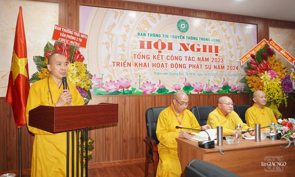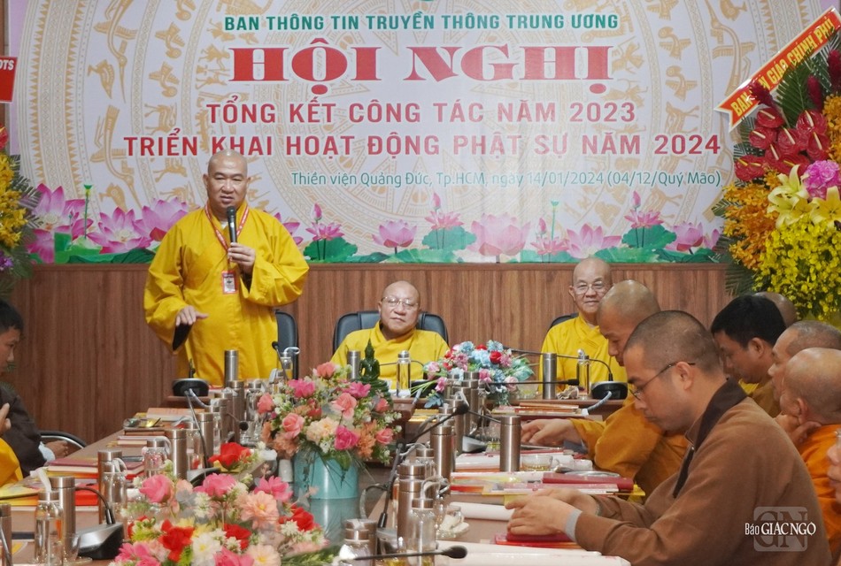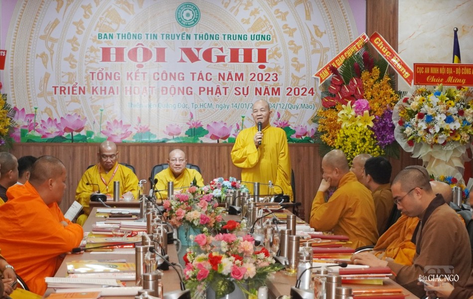 GNO - Đó là nhận định được nêu trong phát biểu khai mạc tại Hội nghị tổng kết công tác Phật sự năm 2023 và triển khai các hoạt động Phật sự năm 2024 của Ban Thông tin - Truyền thông T.Ư, diễn ra tại Văn phòng Ban Thường trực Hội đồng Trị sự phía Nam - thiền viện Quảng Đức (TP.HCM), chiều 14-1.