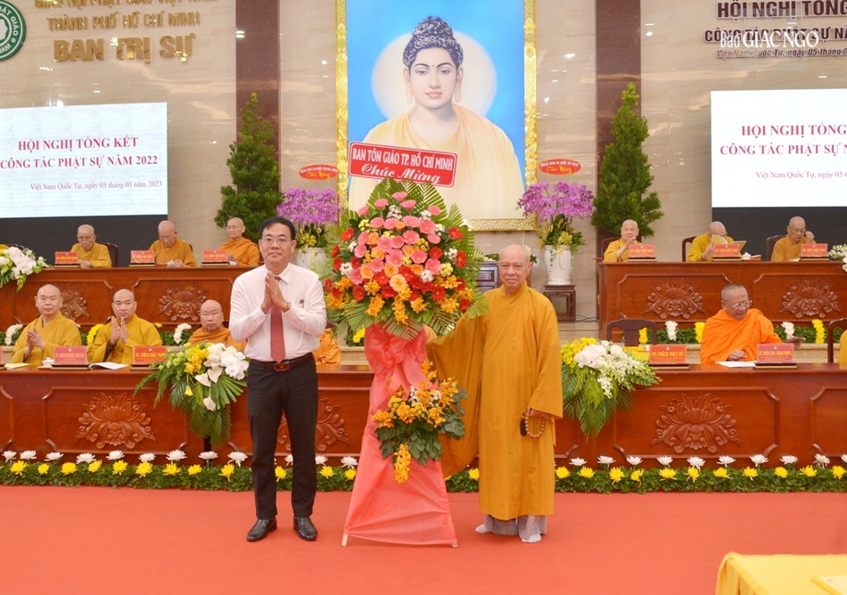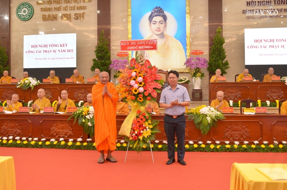 Phát biểu chỉ đạo tại hội nghị, Hòa thượng Thích Thiện Nhơn, Chủ tịch Hội đồng Trị sự đã ghi nhận, tán thán kết quả hoạt động Phật sự của Phật giáo TP.HCM năm 2022.