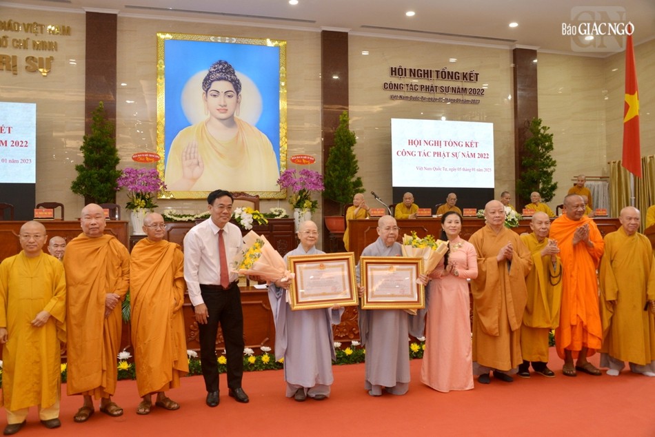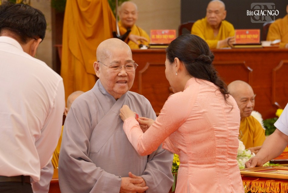 Ghi nhận sự đóng góp của Phật giáo TP.HCM, Ủy ban MTTQVN TP.HCM đại diện trao tặng đến Ni trưởng Thích nữ Từ Nhẫn, Trưởng Phân ban Ni giới TP.HCM Huân chương Lao động hạng II của Chủ tịch nước; Tặng Huân chương Lao động hạng III đến Ni trưởng Thích nữ Như Thảo, Ủy viên Thường trực Hội đồng Trị sự, Ủy viên Thường trực Ban Trị sự, Phó Trưởng Thường trực Phân ban Ni giới TP.HCM.