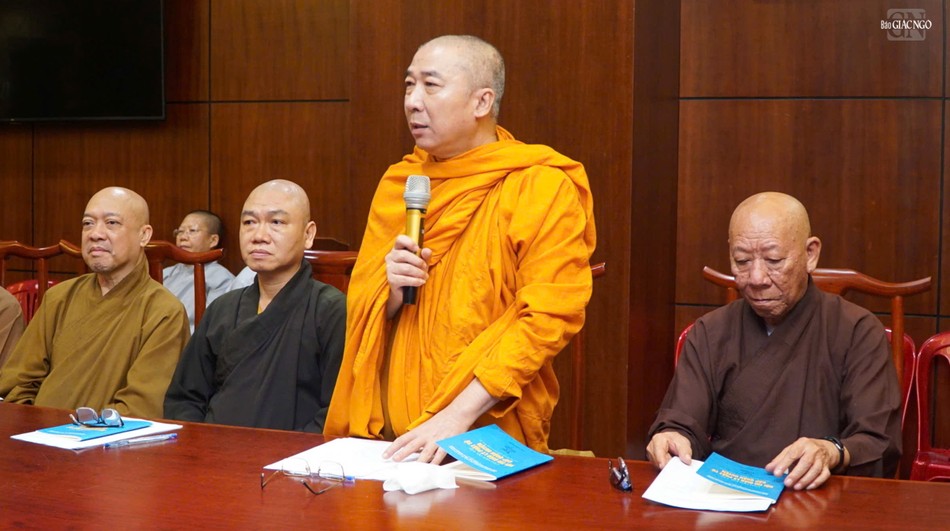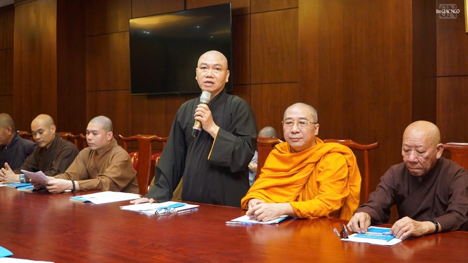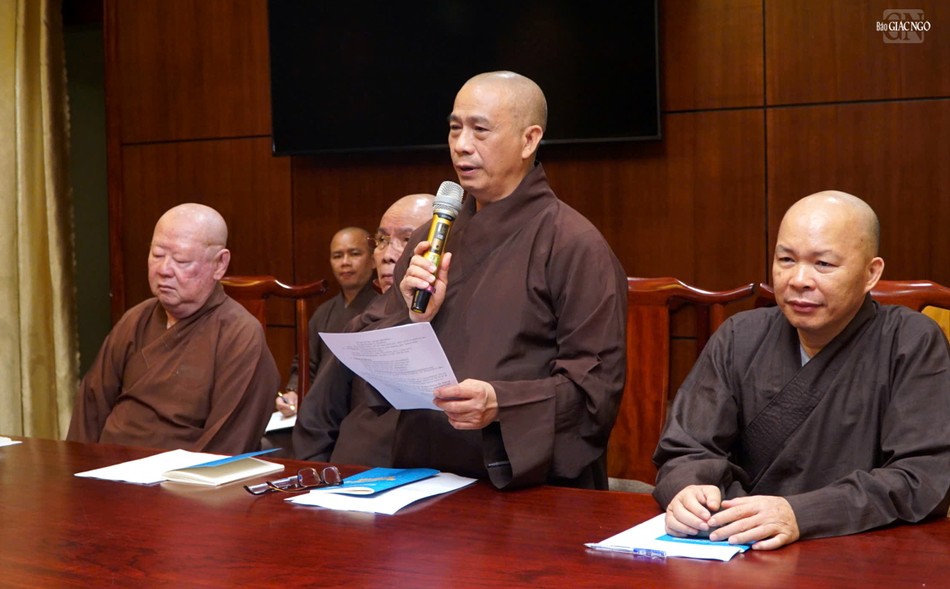 Thượng tọa Thích Thiện Chơn phổ biến một số nội dung tại buổi họp |