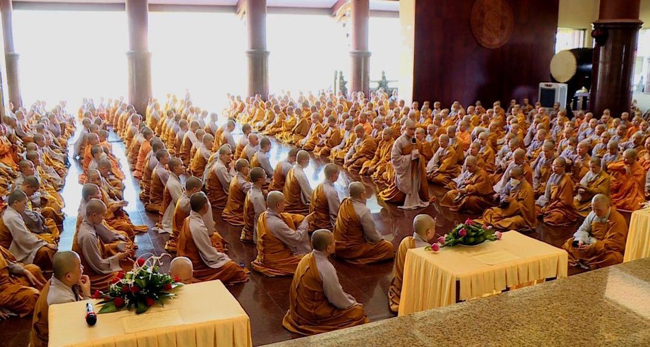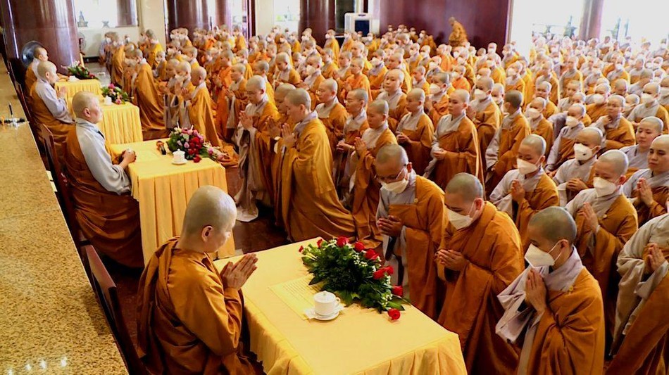 GNO - Sau lễ tác pháp của chư Tăng tại chánh điện mới của Học viện Phật giáo VN tại TP.HCM, chiều nay, 11-5, tại chùa Thanh Tâm (Phật Cô Đơn), Ban Quản viện Ni tổ chức lễ tác pháp an cư cho hơn 700 hành giả Ni là sinh viên các khóa thuộc Học viện đang tu học nội trú tại đây.