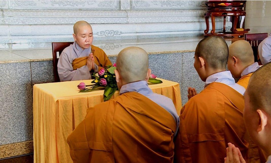Ni sư Như Nguyệt và Ni sư Như Từ đối thú an cư trước, sau đó sẽ nhận đối thú của đại chúng |