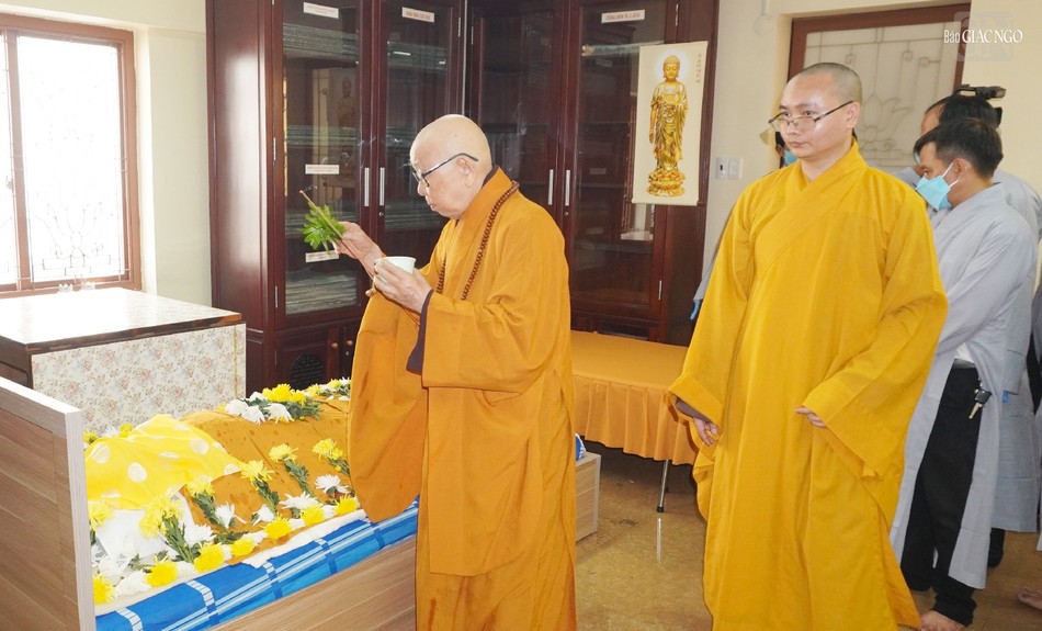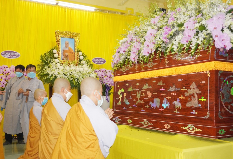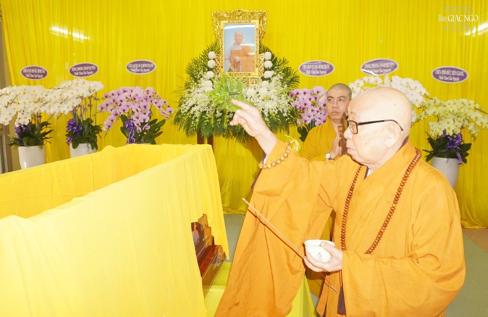 Tại buổi lễ, chư tôn đức giáo phẩm đã niêm hương lễ Phật, sái tịnh kim quan và cử hành lễ nhập kim quan theo nghi thức truyền thống.