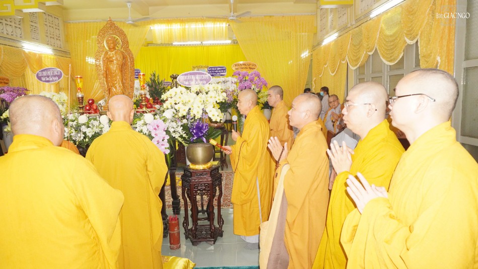 Chứng minh hộ niệm có Trưởng lão Hòa thượng Thích Như Tín, Ủy viên Thường trực Hội đồng Chứng minh, Chứng minh Ban Trị sự GHPGVN TP.HCM; Chứng minh Ban Trị sự GHPGVN Q.10; Hòa thượng Thích Nhựt Hỷ, Phó ban Trị sự kiêm Trưởng ban Hoằng pháp GHPGVN TP.HCM; Thượng tọa Thích Thiện Quý, Phó Trưởng ban kiêm Chánh Thư ký Ban Trị sự GHPGVN TP.HCM; Thượng tọa Thích Quang Thạnh, Phó ban kiêm Trưởng ban Giáo dục Phật giáo TP.HCM; Thượng tọa Thích Quảng Chơn, Trưởng ban Nghi lễ GHPGVN TP.HCM, Phó Thường trực Ban Trị sự GHPGVN Q.10; chư tôn đức Tăng Ni Ban Trị sự GHPGVN TP.HCM, Q.10.