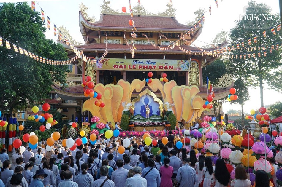 Quang cảnh Đại lễ Phật đản Phật lịch 2567 tại chùa Pháp Bửu sáng ngày 14-4-Quý Mão