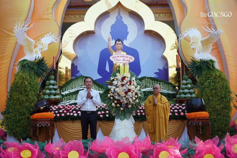 Thay mặt chính quyền H.Hóc Môn, bà Trương Thị Mỹ Hạnh đã phát biểu chúc mừng chư tôn đức Tăng Ni, Phật tử bình an, hạnh phúc trong mùa Phật đản. Bà cho biết lãnh đạo huyện luôn ủng hộ những hoạt động chính đáng của tôn giáo nói chung và Phật giáo nói riêng theo Hiến pháp, Luật tín ngưỡng.