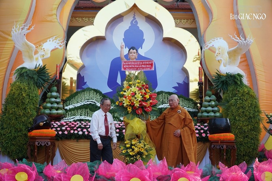 Nhân dịp này, nhiều lẵng hoa đã được gửi đến chúc mừng Đại lễ Phật đản Phật lịch 2567.