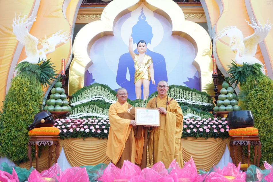 Tại buổi lễ, chư tôn đức và lãnh đạo chính quyền đã đối trước kim thân Đức Phật sơ sanh niêm hương cúng dường Khánh đản. Ban Trị sự GHPGVN huyện cũng đã trao tặng Bằng Tuyên dương công đức đến chùa Pháp Bửu đã hỗ trợ cho công tác tổ chức Đại lễ Phật đản tại lễ đài tập trung của Phật giáo huyện.