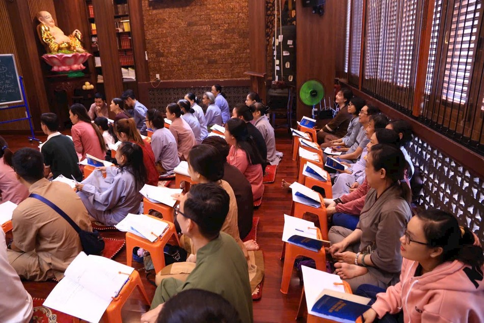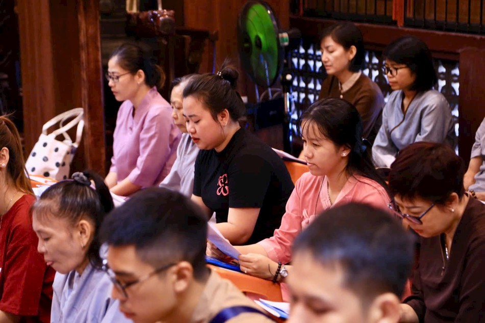 Tại lớp ôn giáo lý, mọi người cùng nhau hát thiền ca, chia sẻ những suy nghĩ và kinh nghiệm cá nhân. Sự chuyên cần và nghiêm túc của từng học viên đã làm cho buổi học trở nên vô cùng bổ ích, không chỉ giúp tăng cường kiến thức mà còn mang lại sự tĩnh tâm và thanh thản trong lòng mỗi người.