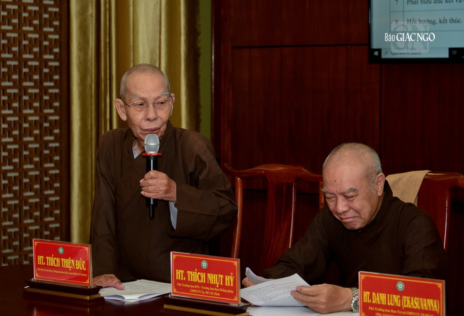 Hòa thượng Thích Lệ Trang, Ủy viên Thường trực Hội đồng Trị sự, Trưởng ban Trị sự GHPGVN TP.HCM chủ trì buổi họp.