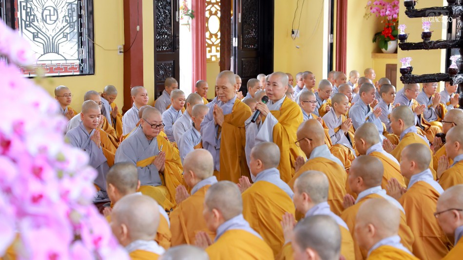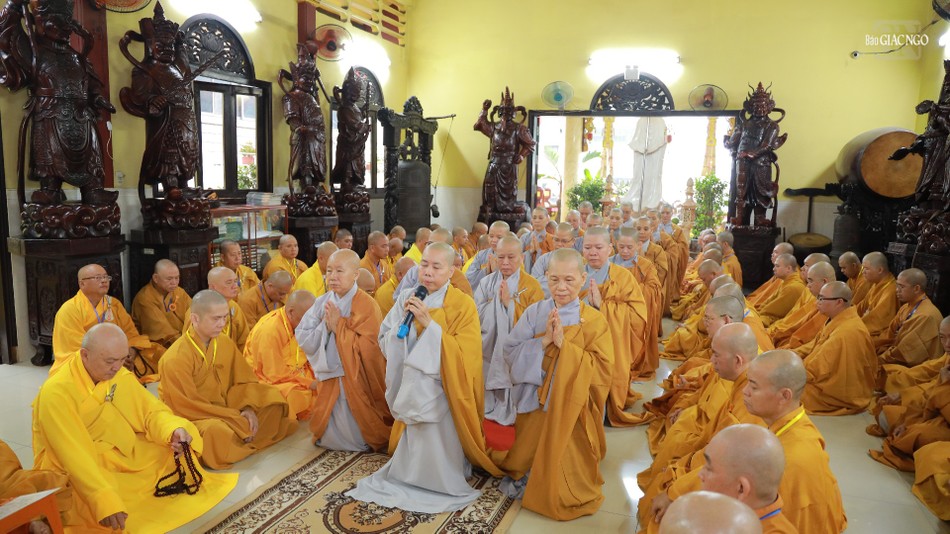 Tại chùa Bửu Liên (P.Thạnh Mỹ Tây), sau khi chư tôn đức chứng minh đảnh lễ chư vị Tổ sư, chư Tăng tuần tự theo hạ lạp vân tập chánh điện. Thượng tọa Thích Chúc Thông xướng tụng cùng đại chúng đảnh lễ Tam bảo, tụng chú Đại bi và phát lồ sám hối.