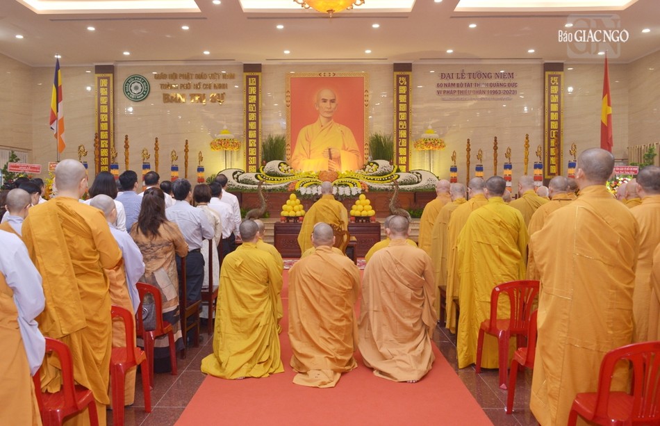 GNO - Sáng nay, 20-4-Quý Mão, tại trung tâm hành chính, văn hóa, tâm linh của Phật giáo TP.HCM - Việt Nam Quốc Tự trang nghiêm diễn ra Đại lễ tưởng niệm 60 năm ngày Bồ-tát Thích Quảng Đức vị pháp thiêu thân. Lễ tưởng niệm do Ban Thường trực Hội đồng Trị sự phối hợp Ban Trị sự GHPGVN TP.HCM tổ chức.