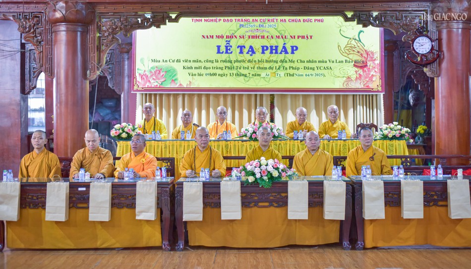 GNO - Theo đó, vào sáng 13-7-Ất Tỵ (4-9), trường hạ chùa Đức Phú (X.Hiệp Phước, TP.HCM) tổ chức Lễ tạ pháp, trao sổ hạ đến các hành giả sau 3 tháng an cư. Dịp này, các Phật tử cũng dâng pháp y cúng dường nhân mùa Vu lan - Báo hiếu Phật lịch 2569.