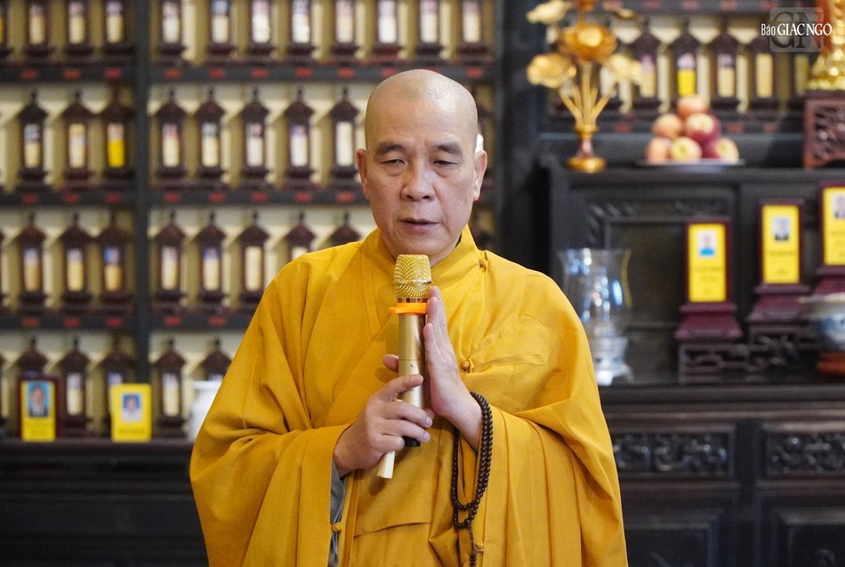 Thượng tọa Thích Quảng Chơn, Trưởng ban Nghi lễ GHPGVN TP.HCM truy tán công hạnh của Trưởng lão Hòa thượng đối với Phật giáo Việt Nam.