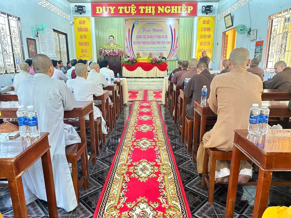 Đại diện cho lãnh đạo tỉnh, ông Lê Văn Tịnh đánh giá cao công tác lãnh đạo, chỉ đạo của Ban Trị sự GHPGVN tỉnh, sự gắn kết của Ban Trị sự các cấp và chính quyền các cấp. Tọa đàm đã nêu 6 nhóm vấn đề mà các cấp Giáo hội và Tăng Ni đã đóng góp ý kiến như: Bất cập về việc quản lý Tăng Ni, thuyên chuyển chức sắc tôn giáo và cư trú của Tăng Ni tại tịnh xá Ngọc Vân và chùa Lâm Phước, TP.Trà Vinh; hướng dẫn thủ tục đăng ký sinh hoạt tôn giáo tập trung ở H.Càng Long và H.Cầu Ngang. Trước đó, Ban Trị sự GHPGVN tỉnh đã đăng ký thành lập 3 điểm sinh hoạt tôn giáo tập trung ở Châu Thành đã được cấp giấy chứng nhận.