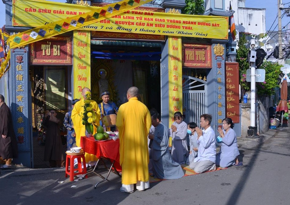 Hòa thượng cho biết thêm, với sự phát tâm của các gia đình Phật tử thân hữu thuần thành, có cảm ứng đặc biệt với các trường hợp tử nạn này, việc tổ chức trai đàn hướng đến các hương linh uổng tử xảy ra theo đường sắt đã được khởi từ hai năm trước nhưng do tình hình dịch Covid-19 tại TP.HCM diễn biến phức tạp, nên đến thời điểm này, chùa mới tổ chức được theo ý nguyện.