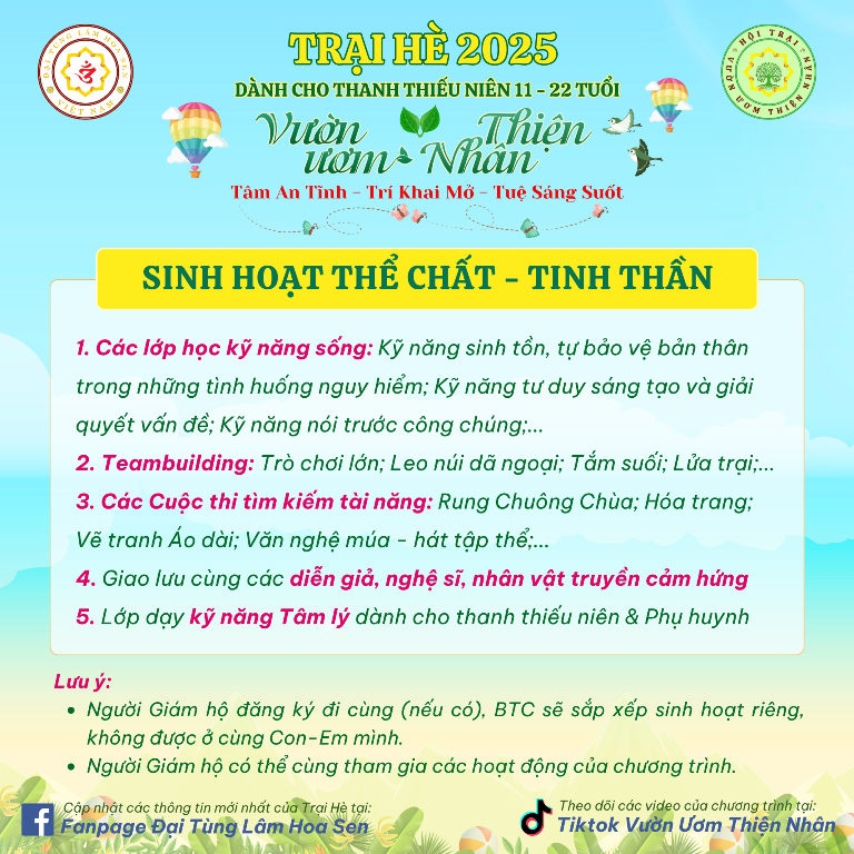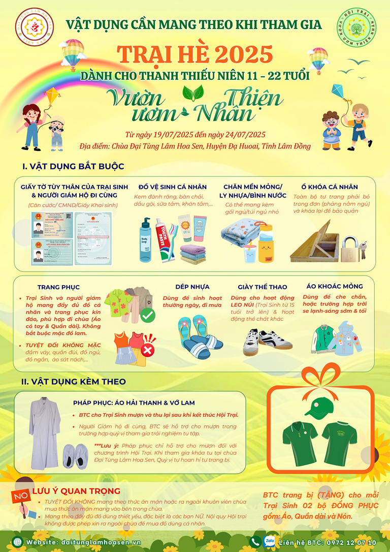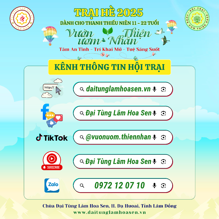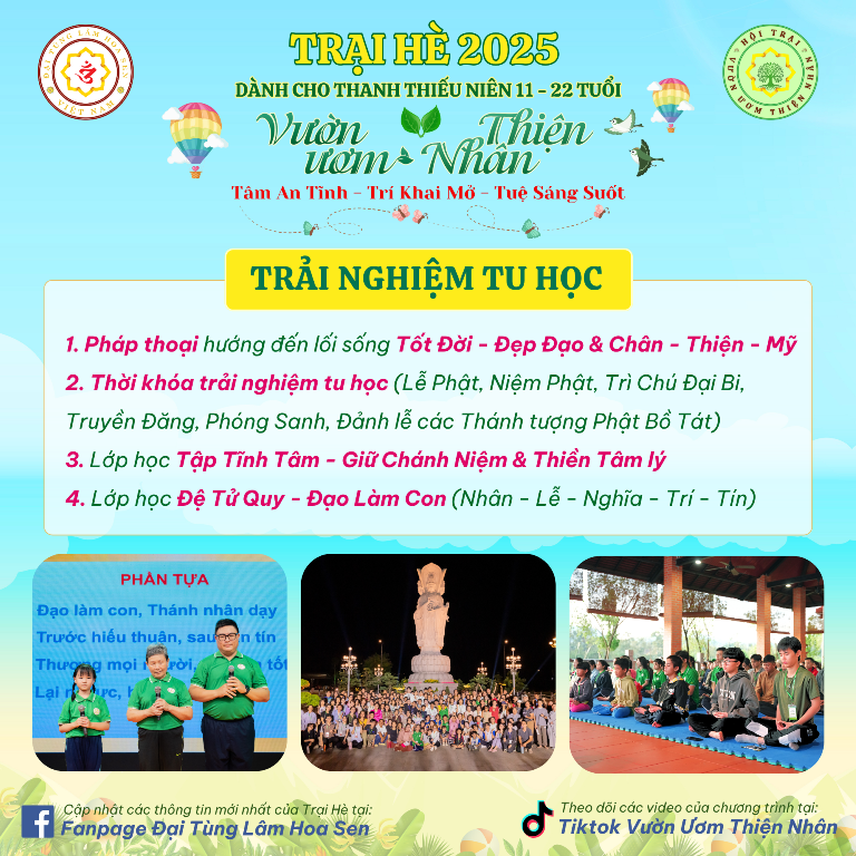 - Cập nhật các thông tin mới nhất về Trại hè - Vườn ươm thiện nhân tại Fanpage Đại Tùng Lâm Hoa Sen: https://facebook.com/daitunglamhoasen.vn