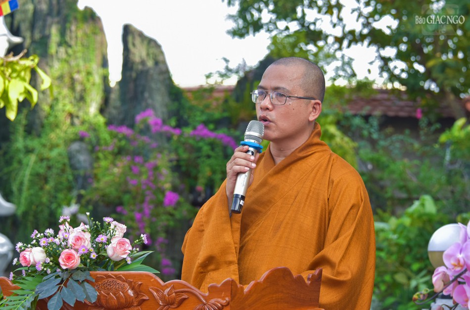 Thượng toạ Thích Thiện Từ, Trưởng ban Trị sự Phật giáo H.Nhà Bè, Trưởng ban Tổ chức Đại lễ Phật đản của Ban Trị sự H.Nhà Bè đọc Diễn văn Phật đản Phật lịch 2569 của Trưởng lão Hòa thượng Chủ tịch Hội đồng Trị sự gửi đến toàn thể Tăng Ni, Phật tử.