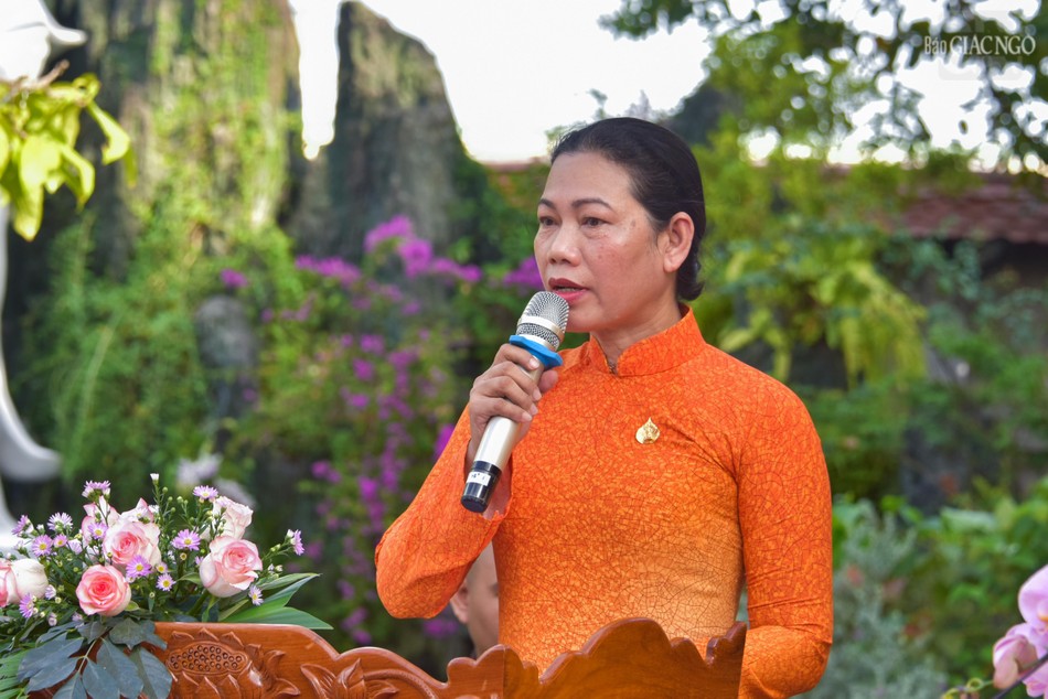 Nhân sự kiện này, bà Trương Kim An, Chủ tịch Ủy ban MTTQVN H.Nhà Bè thay mặt lãnh đạo chính quyền có lời chúc mừng đến toàn thể Tăng Ni, Phật tử một mùa Phật đản an lành.