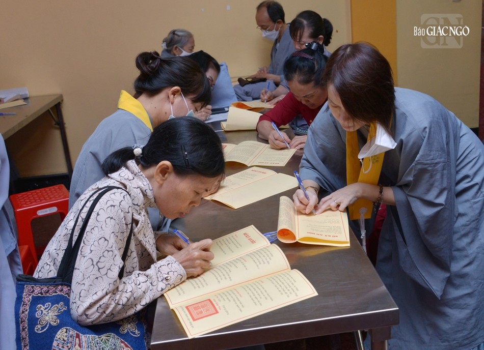Cũng trong sáng ngày mồng 6 tháng Giêng, sau nghi thức khai đàn, chư vị đàn chủ cùng chư tôn đức Ban Kinh sư đã hướng dẫn đạo tràng đồng trì tụng kinh Dược Sư, hồi hướng công đức nguyện cầu trăm họ đều lạc nghiệp an cư, muôn nơi được thái bình thịnh trị.