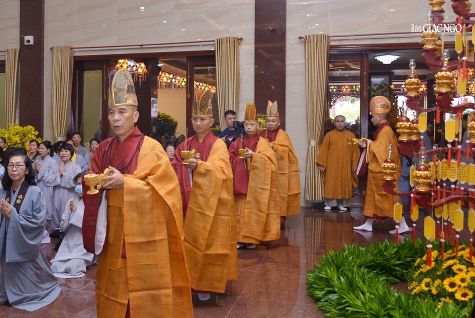 Tiếp đó, phần nghi lễ khai đàn Pháp hội Dược Sư được trang nghiêm cử hành. Trong tiếng đồng thanh trì tụng thần chú Đại bi, Hòa thượng Thích Lệ Trang, Trưởng ban Nghi lễ T.Ư, Trưởng ban Trị sự Phật giáo TP.HCM đương vi đệ nhất đàn chủ, cùng chư tôn giáo phẩm Ban Thường trực Ban Trị sự GHPGVN TP.HCM được cung thỉnh vào phương vị đàn chủ 6 đàn còn lại đã thực hiện nghi thức nhiễu đàn, cử nhành dương sái tịnh đàn tràng.