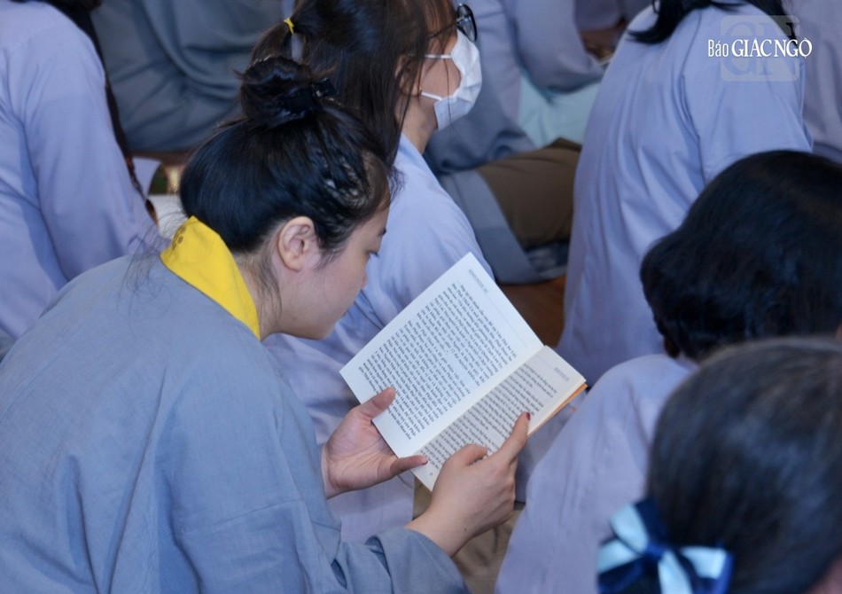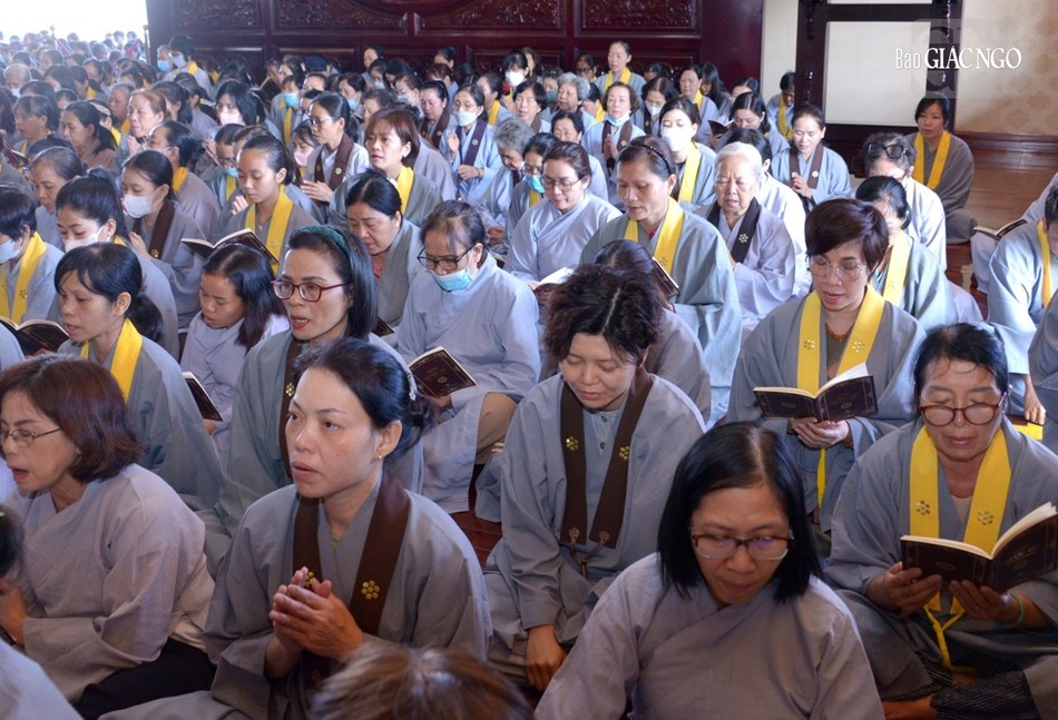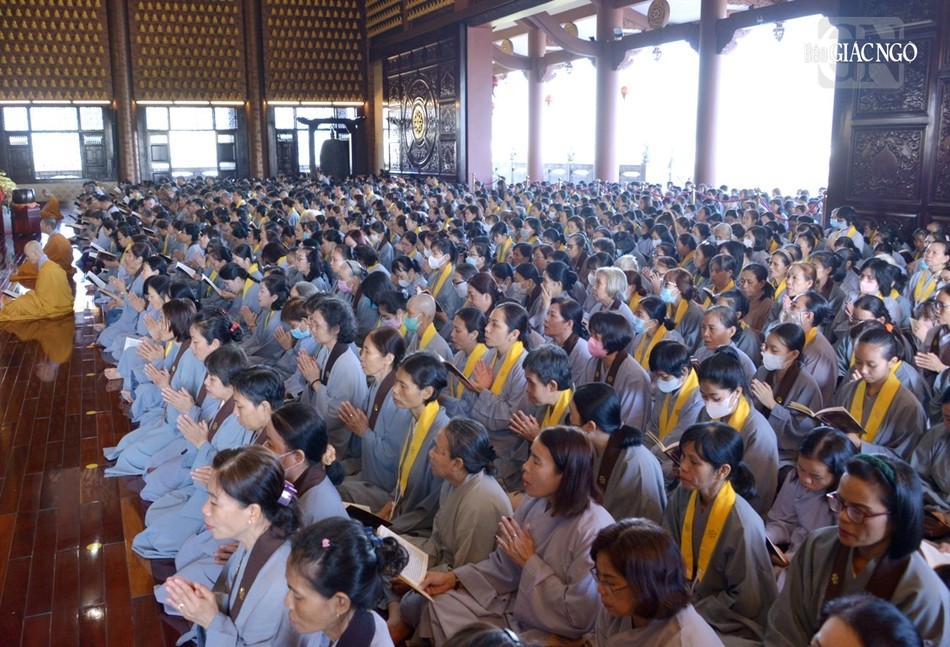 GNO - Sáng nay, mồng 3 Tết Giáp Thìn (12-2-2024), tại chùa Huê Nghiêm - TP.Thủ Đức (TP.HCM), đông đảo Phật tử Đạo tràng Pháp Hoa đã trở về tham dự Lễ khai kinh Dược Sư đầu năm mới.