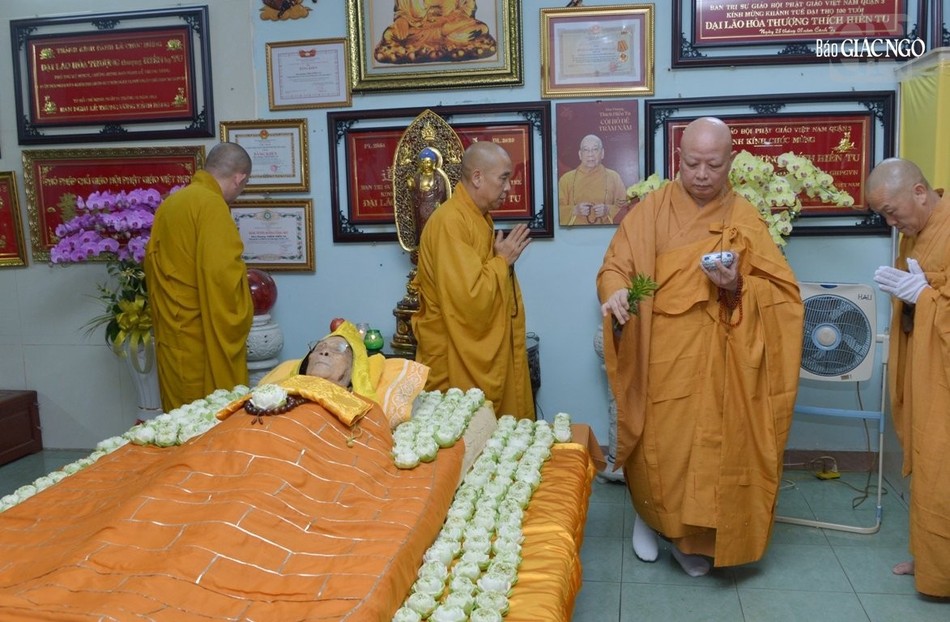 GNO - 14 giờ chiều nay 13-2 (nhằm mồng 4 tháng Giêng năm Giáp Thìn), Hội đồng Chứng minh, Hội đồng Trị sự và Ban Trị sự GHPGVN TP.HCM cùng môn đồ pháp quyến trang nghiêm tổ chức Lễ nhập kim quan Trưởng lão Hòa thượng Thích Hiển Tu, Phó Pháp chủ Hội đồng Chứng minh GHPGVN tân viên tịch.