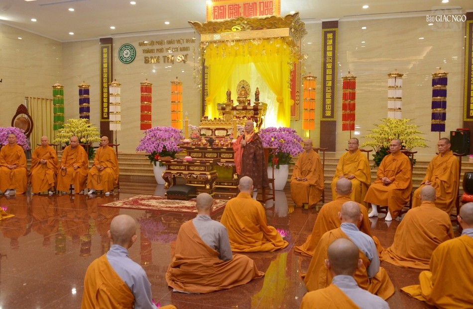 Vì vậy hãy tu tập, hãy nương tựa trong ánh sáng tỉnh thức, để chúng ta có khả năng biết thương yêu mình, từ đó chúng ta mới có thể khởi năng lượng thương yêu chăm sóc người thân của mình. Và đó là nét đẹp nhân văn, là đạo lý dân tộc Việt Nam, cũng là tôn chỉ của người học Phật", Hòa thượng Thích Lệ Trang khai thị.