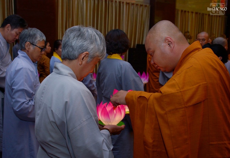 Sau lời khai thị, chư tôn đức đã thành kính dâng hương đảnh lễ chư Phật và chư vị Bồ-tát. Hòa thượng Thích Lệ Trang đã truyền đăng đến chư Tăng và sau đó ánh sáng được truyền đến chư Tăng, Phật tử hiện diện.