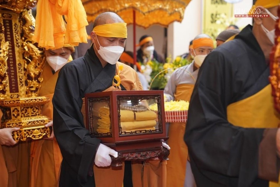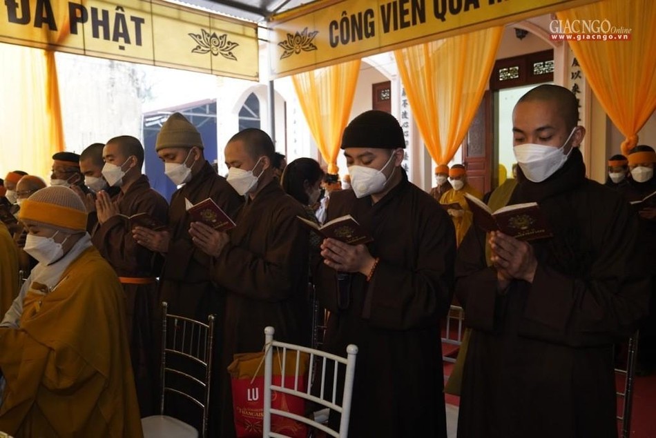 GNO - Sáng 21-1 (19-12-Tân Sửu), Ban Thường trực Hội đồng Chứng minh, Hội đồng Trị sự, Ban Trị sự GHPGVN tỉnh Ninh Bình và môn đồ pháp quyến trang nghiêm cử hành lễ truy điệu, phụng tống kim quan Đại lão Hòa thượng Thích Thanh Đàm nhập bảo tháp.