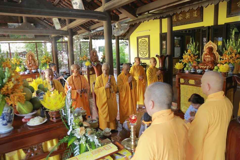 Cùng ngày, chư Tăng Ni sơn môn pháp phái và các trú xứ đã vân tập tổ đình Kim Tiên đồng tụng đàn Thủy sám và kinh Địa Tạng.