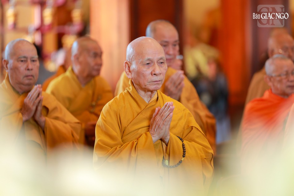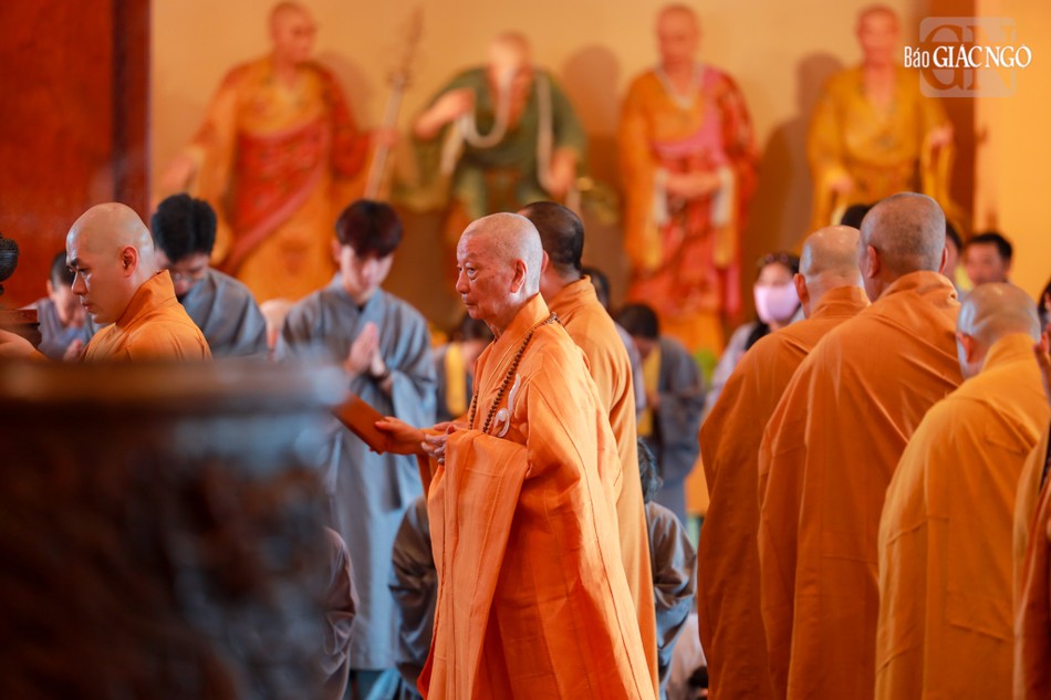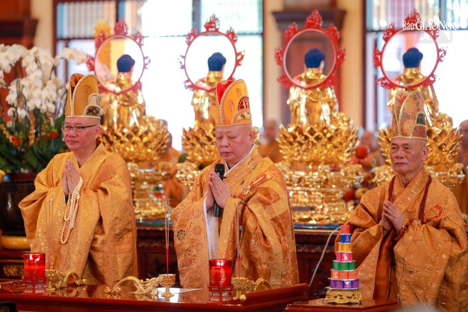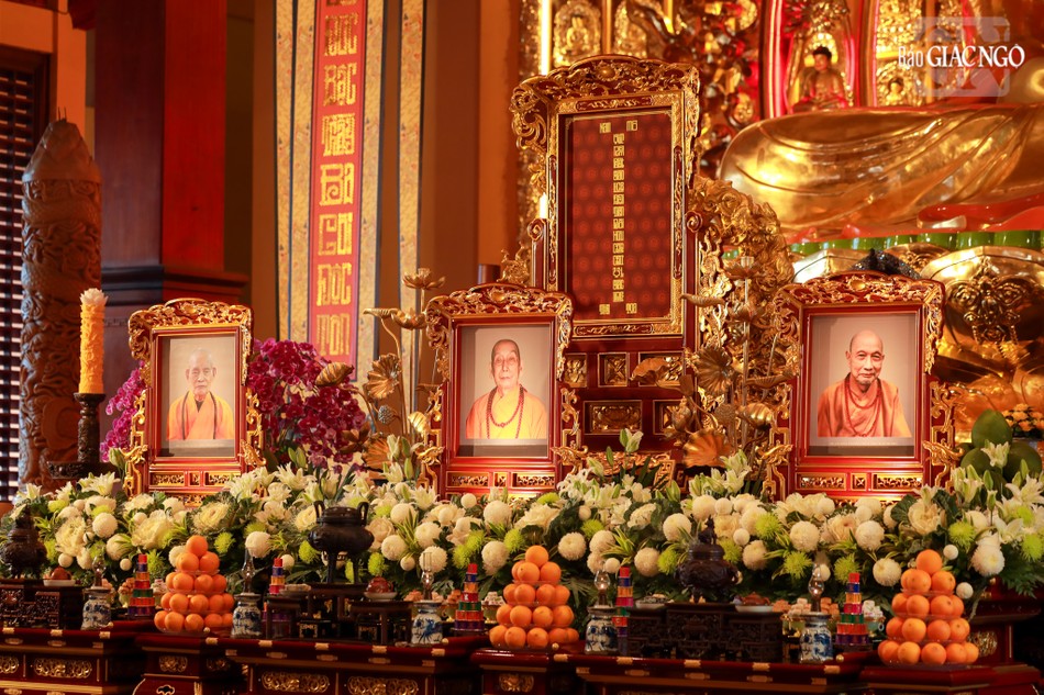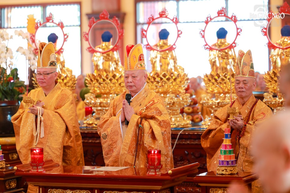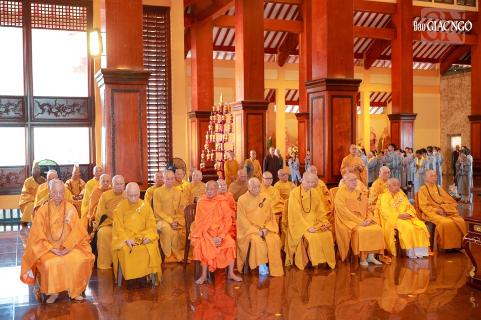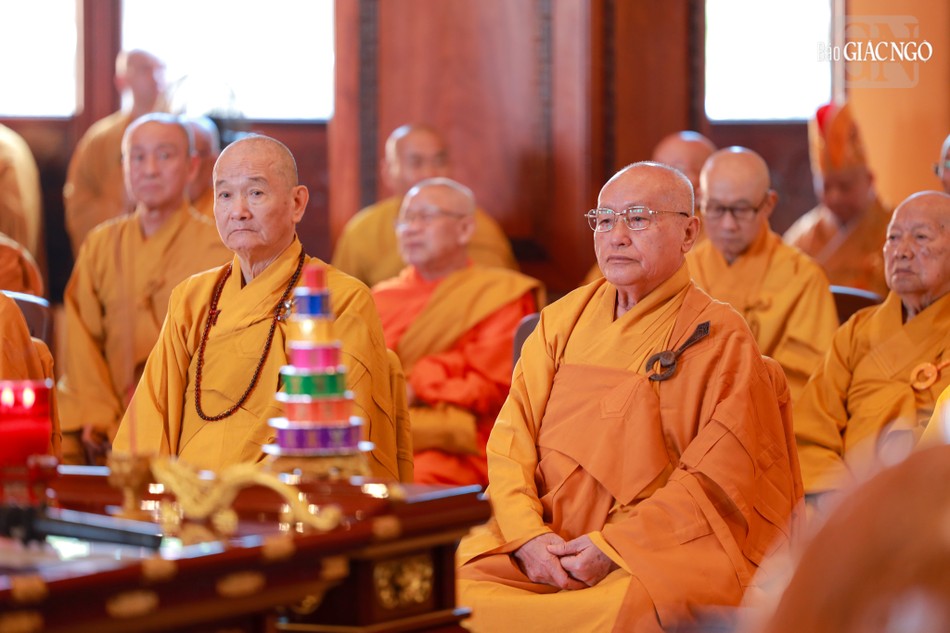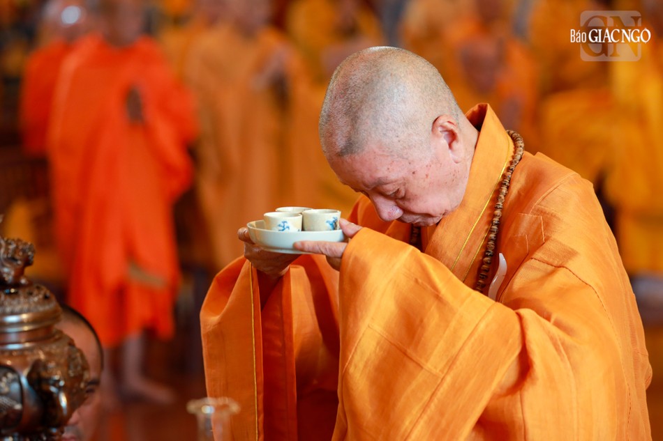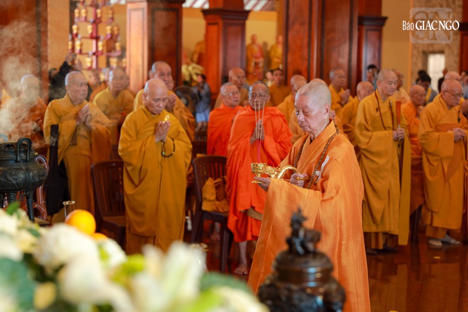 Hòa thượng Thích Lệ Trang, Ủy viên Thường trực Hội đồng Trị sự, Trưởng ban Nghi lễ T.Ư, đương vi sám chủ; Hòa thượng Thích Giác Đạo, Ủy viên Hội đồng Trị sự, Phó Trưởng ban Thường trực Ban Nghi lễ T.Ư; Thượng tọa Thích Thanh Lợi, Phó Trưởng ban kiêm Chánh Thư ký Ban Nghi lễ T.Ư cùng chư tôn đức Ban Kinh sư trang nghiêm cử hành pháp sự cung tiến giác linh, tiến trà, cúng dường phạn thực; truy tán công hạnh sâu dày của chư vị Pháp chủ với đạo phong và đức độ đã lãnh đạo Giáo hội về giáo pháp và giới luật kể từ những ngày đầu thành lập đến nay; chư vị Trưởng lão đã gìn giữ, nối tiếp mạng mạch đạo pháp, truyền thừa của lịch đại Tổ sư, dẫn lối soi đường cho hàng hậu tấn.