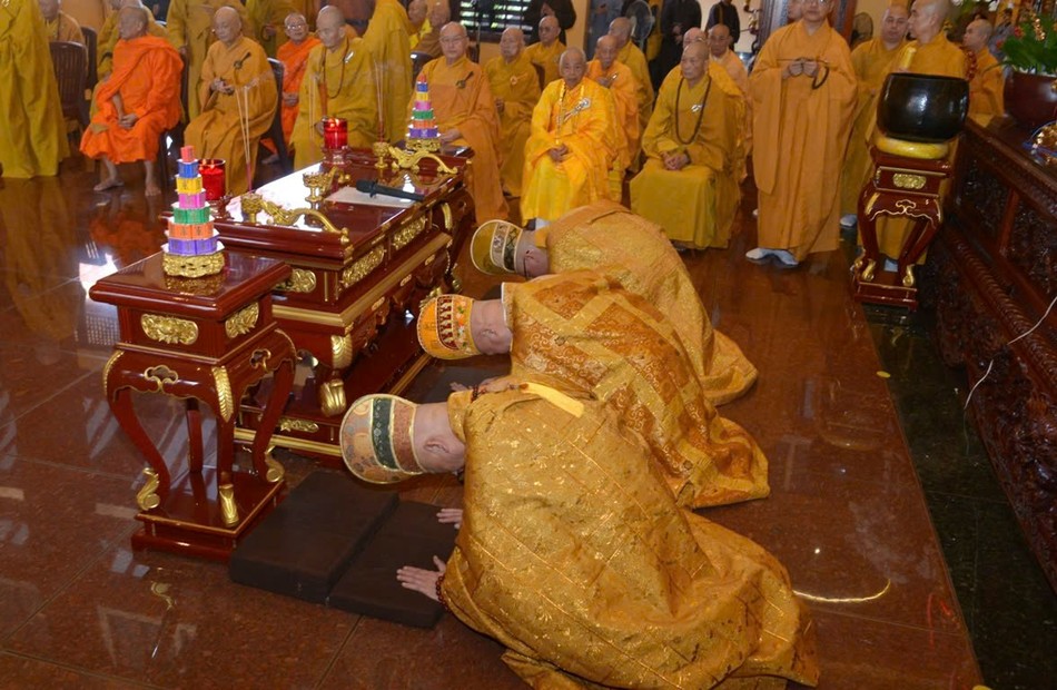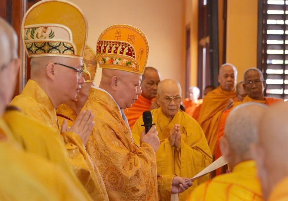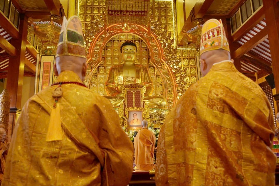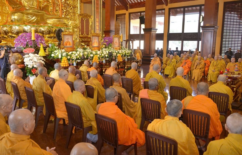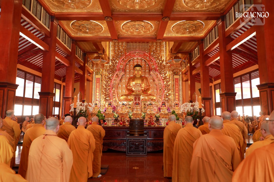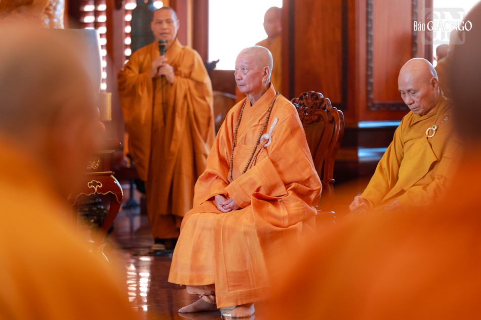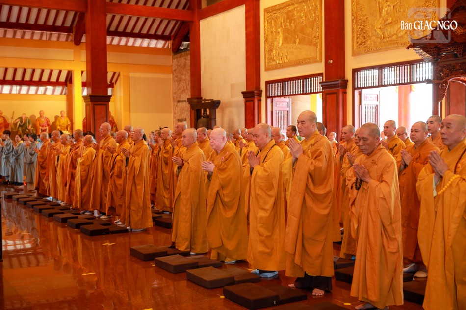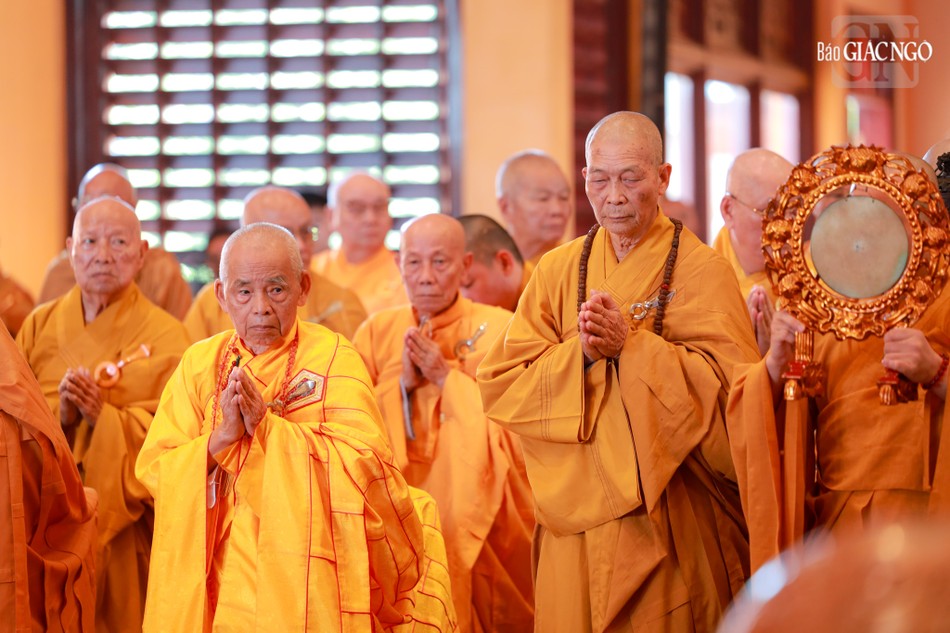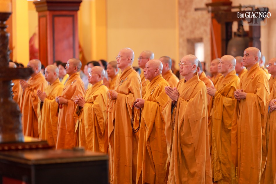 Hòa thượng Thích Lệ Trang, Ủy viên Thường trực Hội đồng Trị sự, Trưởng ban Nghi lễ T.Ư, đương vi sám chủ; Hòa thượng Thích Giác Đạo, Ủy viên Hội đồng Trị sự, Phó Trưởng ban Thường trực Ban Nghi lễ T.Ư; Thượng tọa Thích Thanh Lợi, Phó Trưởng ban kiêm Chánh Thư ký Ban Nghi lễ T.Ư cùng chư tôn đức Ban Kinh sư trang nghiêm cử hành pháp sự cung tiến giác linh, tiến trà, cúng dường phạn thực; truy tán công hạnh sâu dày của chư vị Pháp chủ với đạo phong và đức độ đã lãnh đạo Giáo hội về giáo pháp và giới luật kể từ những ngày đầu thành lập đến nay; chư vị Trưởng lão đã gìn giữ, nối tiếp mạng mạch đạo pháp, truyền thừa của lịch đại Tổ sư, dẫn lối soi đường cho hàng hậu tấn.