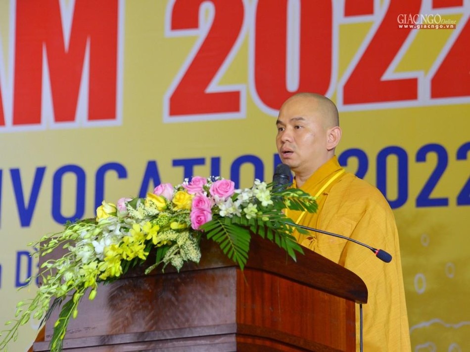 Phát biểu khai mạc, Thượng tọa Thích Nhật Từ chúc mừng đến các Tăng, Ni và học viên được tốt nghiệp năm 2022 các hệ đào tạo thuộc Học viện Phật giáo VN tại TP.HCM.