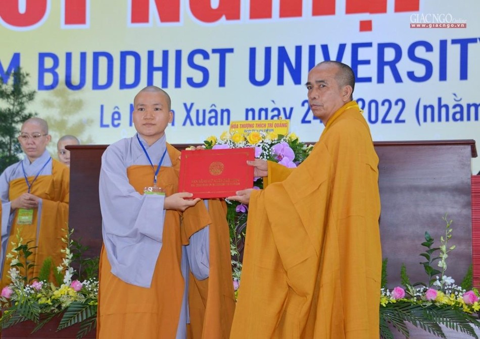Thượng tọa Thích Quang Thạnh đã đọc quyết định công nhận tốt nghiệp năm 2022. Theo đó, đợt này có 35 Tăng, Ni và học viên tốt nghiệp thạc sĩ Phật học; 307 Tăng, Ni sinh tốt nghiệp cử nhân Phật học; 170 học viên hệ đào tạo từ xa; 43 học viên cao đẳng liên thông với các Trường Phật học tỉnh Tiền Giang và Bà Rịa - Vũng Tàu.