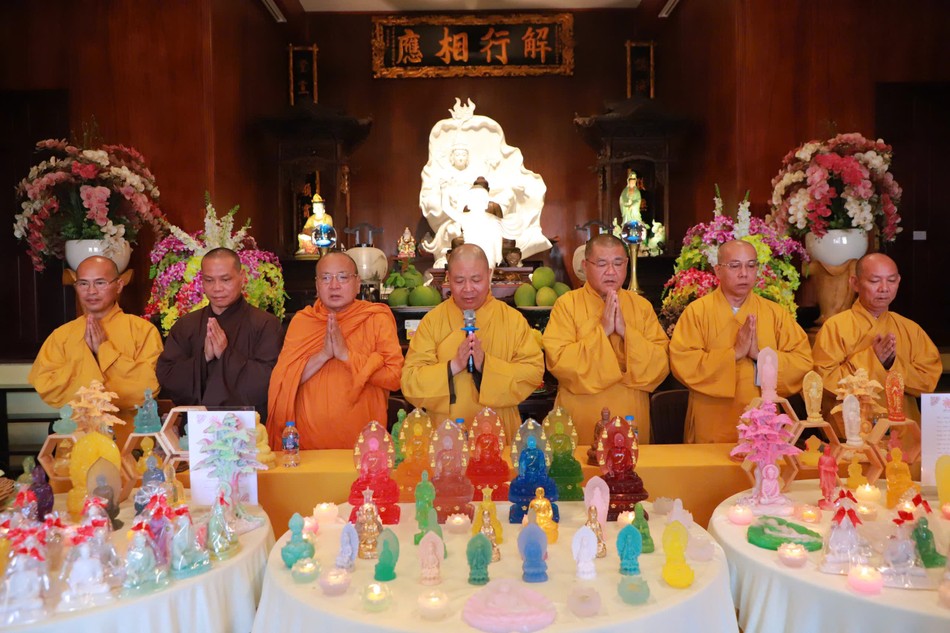 | Chư tôn đức tiếp nhận, cử hành nghi thức sái tịnh các tôn tượng sẽ được cúng dường tại Đại lễ Vesak 2025 |