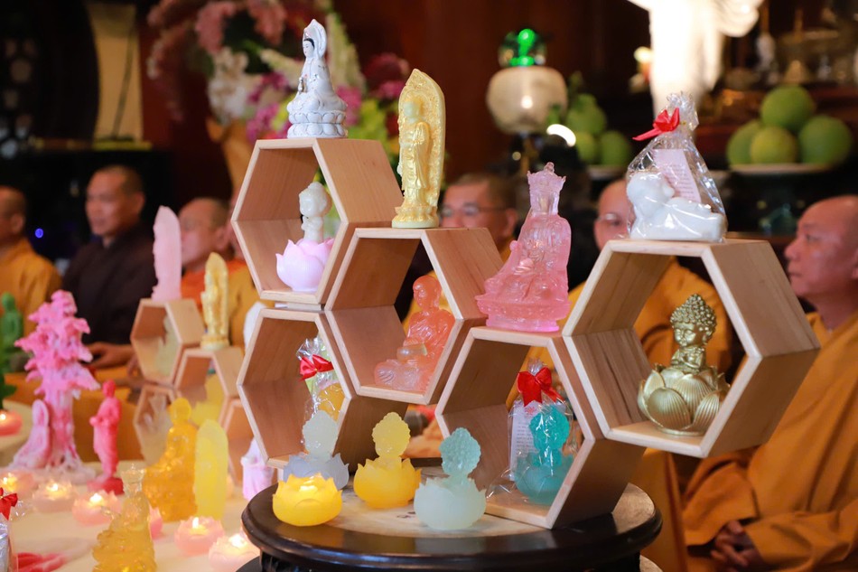 Dịp này, chư tôn đức lãnh đạo Ban Văn hóa T.Ư đã tiếp nhận 10.000 tượng Phật do đạo tràng Tâm Như Hạnh thực hiện, làm quà tặng trao đến đại biểu, khách mời và tình nguyện viên tham gia Đại lễ Vesak 2025; trang nghiêm cử hành nghi thức sái tịnh, cầu nguyện, tiếp nhận các tôn tượng.
