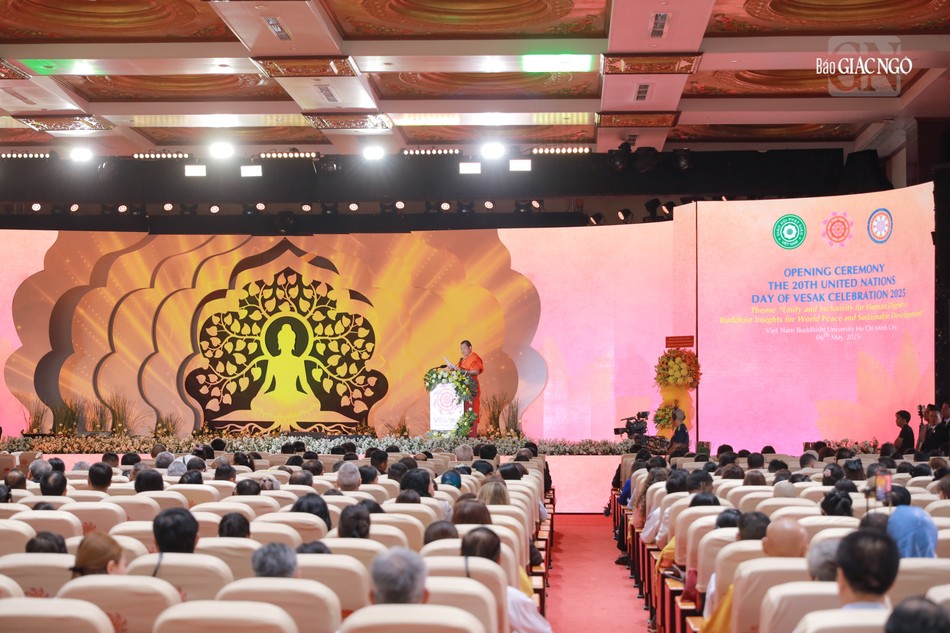 GNO - Sáng nay, 6-5, tại Cơ sở II - Học viện Phật giáo VN tại TP.HCM (xã Lê Minh Xuân, H.Bình Chánh), Lễ khai mạc Đại lễ Vesak Liên Hiệp Quốc 2025 tại TP.HCM đã chính thức được diễn ra với chủ đề “Đoàn kết và bao dung vì nhân phẩm con người: Tuệ giác Phật giáo vì Hòa bình thế giới và Phát triển bền vững”