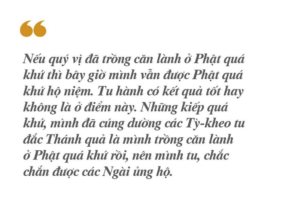 Tôi tu hành, nhìn đời thấy rõ điều này. Có những người thương mình vô điều kiện, có người mình kính trọng họ thực sự dù chưa nói gì. Nhưng cũng có người mình không thiện cảm, hay có người vô cớ gây khó khăn cho mình, v.v… Đó là sự thể hiện căn lành hay nghiệp ác trong cuộc sống này. Tôi tu được đến ngày nay toàn gặp thiện tri thức hướng dẫn, chỉ đường, dạy cách tu, tôi mới thăng hoa được. Đó chính là nhờ căn lành từ quá khứ nên tôi sanh trên cuộc đời này gặp được các bậc chân tu thương và giúp đỡ, nên tôi tiến tu dễ dàng.