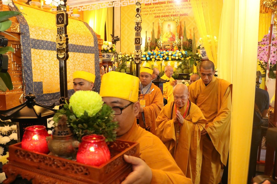 Theo chương trình tang lễ, lễ truy niệm được cử hành vào lúc 10 giờ hôm nay, 10-9 (8-8-Giáp Thìn), sau đó phụng tống kim quan Hòa thượng nhập bảo tháp trong khuôn viên chùa Phước Lâm (P.2, TP.Sa Đéc).