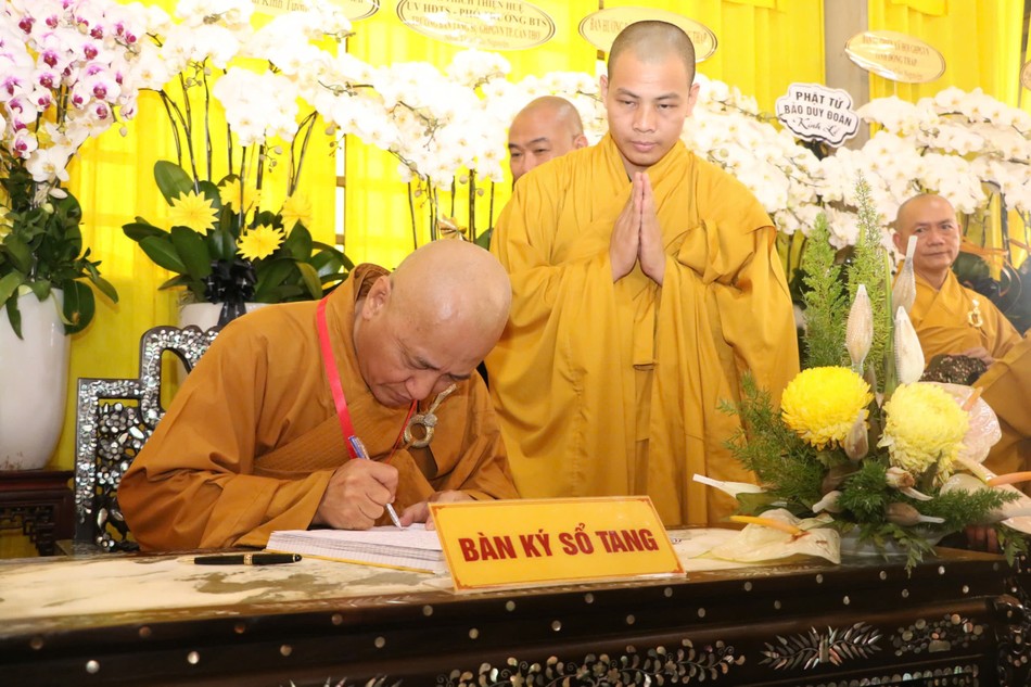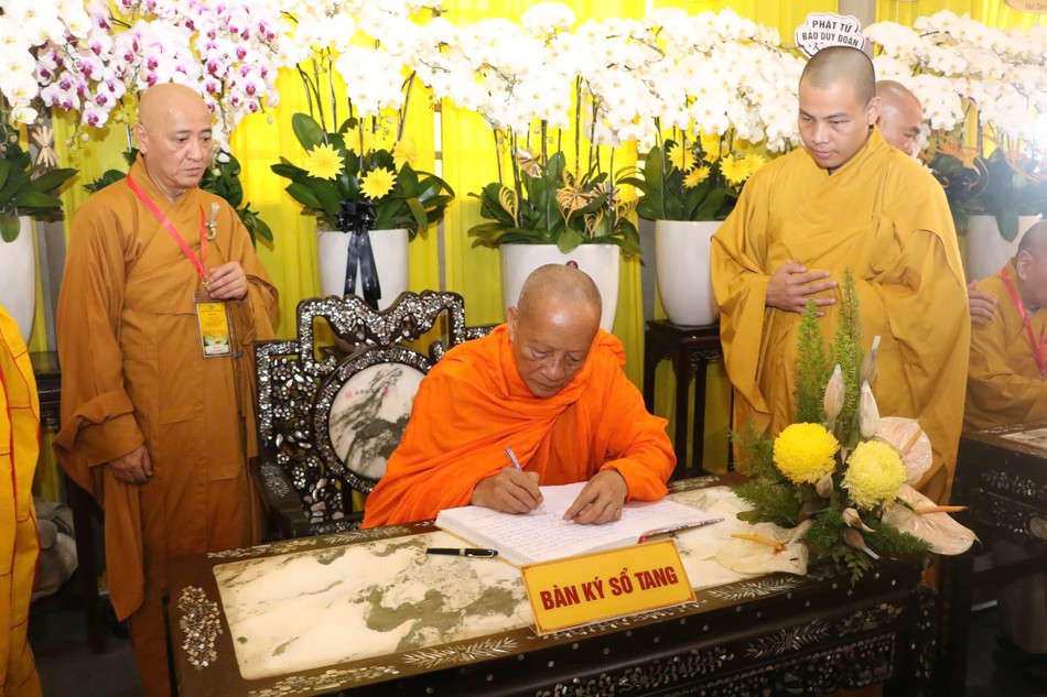 Hòa thượng Thích Lệ Trang ghi sổ tang lưu niệm |